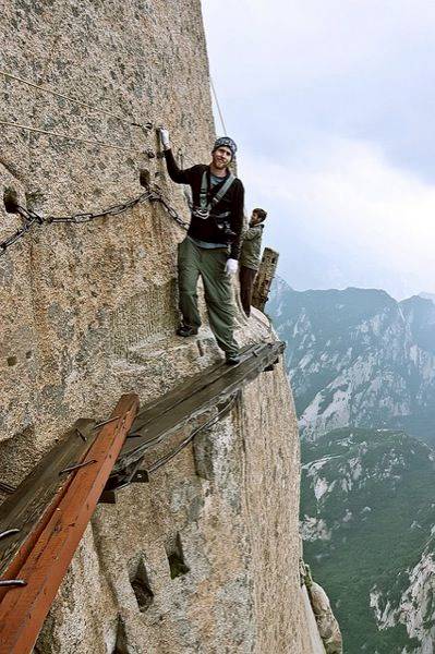 Olahraga mengerikan di alam bebas yang pertama adalah Mount Huashan Shaanxi atau Mount Hua. Kalo di Bandung ada Gunung Hawu, di China ada Gunung Hua. Gunung ini seakan-akan mustahil untuk ditaklukan karena memiliki tinggi hampir 2.100 meter (6.800 kaki). Tebing gunung ini bertatahkan batu kapur yang tidak menutup kemungkinan mudah rapuh ketika diinjak dan tentunya dapat mengancam nyawa. Saking ekstrim-nya, tempat ini dijuluki “Mountain of Death”.