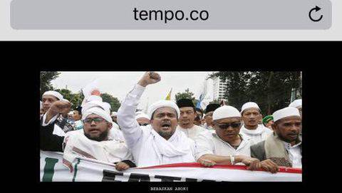 "Bebaskan Ahok," demikian tulis peretas situs Tempo. Tulisan itu tepat berada di bawah potret Rizieq saat mengikuti satu dari sekian unjuk rasa menentang Ahok yang digelar Gerakan Nasional Pengawal Fatwa MUI.