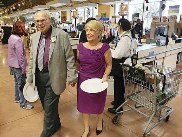 Kalau pasangan yang satu ini, mereka memutuskan untuk menikah di toko kelontong murah bernama 99 Cents Only Store. Pasalnya, toko ini membuat sebuah program unik untuk menikahkan sembilan pasangan, di lorong sembilan, pada tanggal sembilan, tahun 2009. Sungguh unik!