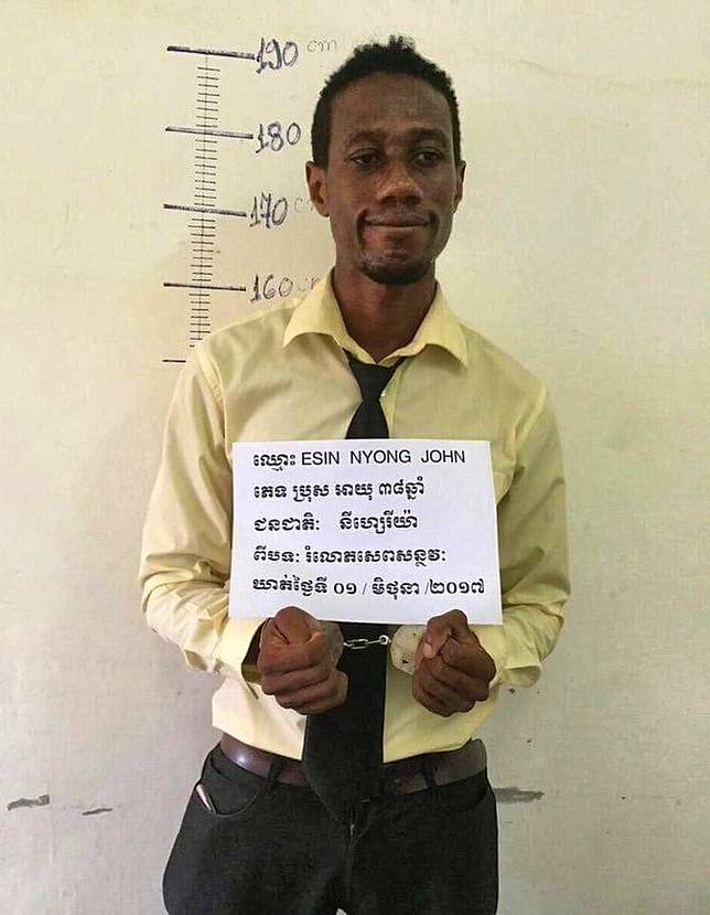 "Nomor ponsel pelaku kan masih aktif, polisi menyaru sebagai pemilik perusahaan yang menawarkan pekerjaan kepada pelaku dan mereka janjian bertemu di kafe pom bensin PTT di Siem Reap. Saat bertemu, enam orang petugas Reskrim Siem Reap menyergap pelaku. Sebelum menyergap, korban lebih dahulu mengenali pelaku ketika dia tiba di kafe," ungkap Nelson.