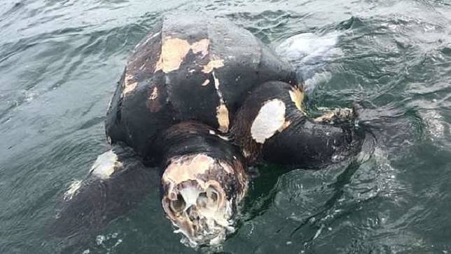 Setelah semakin dekat ke objek misteri, mereka menyadari bahwa itu sebenarnya adalah tubuh penyu belimbing yang membusuk.